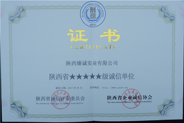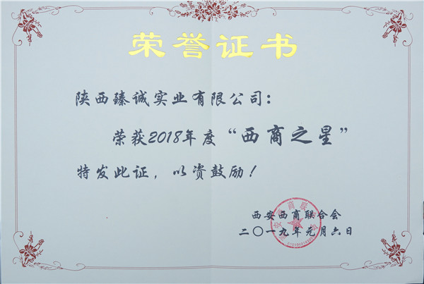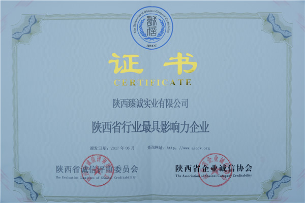 陜西臻誠(chéng)實(shí)業(yè)集團(tuán)有限公司榮譽(yù)證書